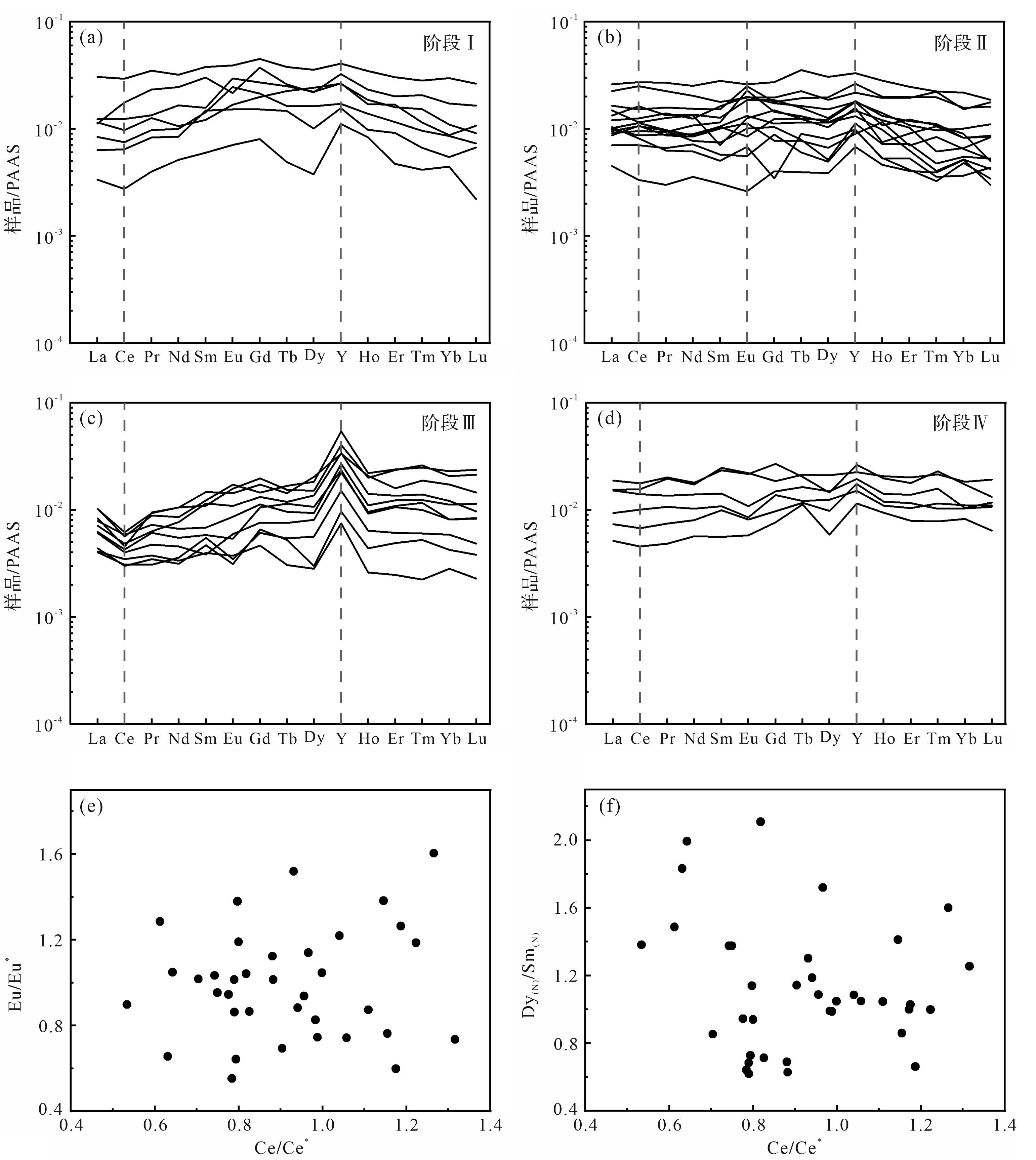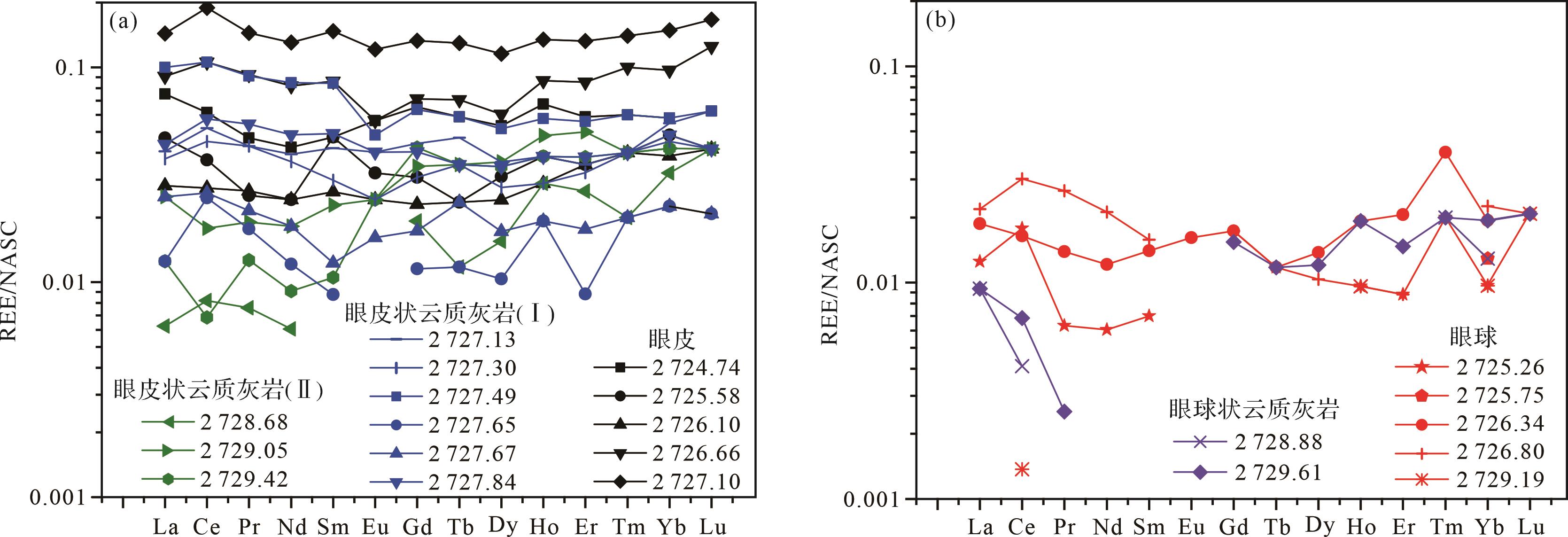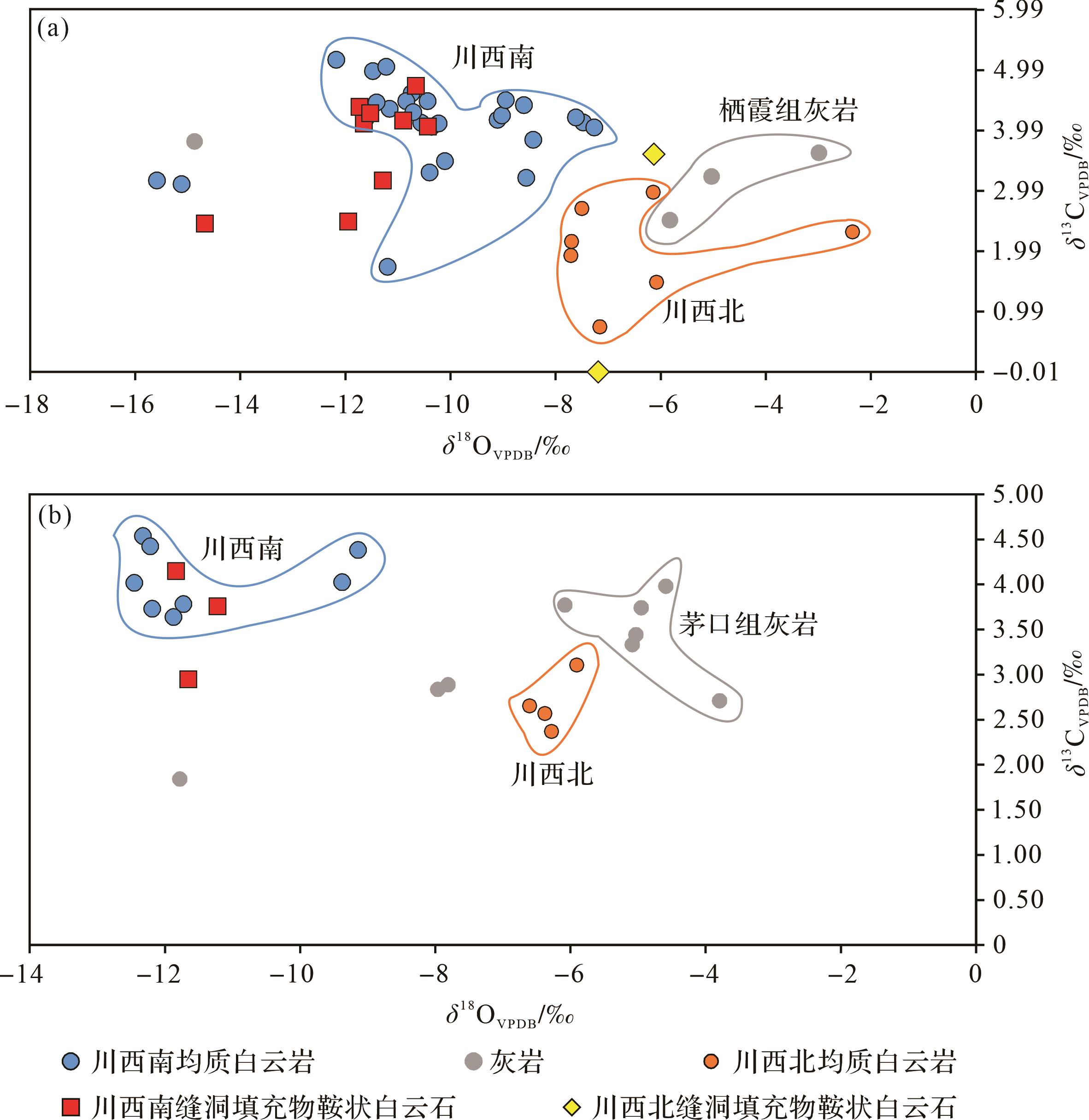 目的 灰岩—泥灰岩韵律层作为气候、水文以及地质事件的载体,是地质学者的重点研究对象,但四川盆地茅一段眼球状灰岩的成因一直存在争议。DB1井茅一段眼球状灰岩中发育准同生—早成岩期白云石化现象,可以较好限制碳酸盐岩的沉积环境。 方法 通过对DB1井茅一段云质岩类系统的岩石学和地球化学分析,讨论云化流体和云化过程。 结果 DB1井茅一段存在三种云质岩类,眼皮状云质灰岩(I,泥质云岩)发育准同生期溶蚀孔,阴极发光环带发育,具有平坦型稀土配分模式,较高的δ13C、δ18O值以及低于海水的Y/Ho,是少量大气淡水混合海水在准同生期云化形成;眼皮状云质灰岩(II,灰质云岩)具有左倾型稀土配分模式,与同沉积海水一致的δ13C、δ18O、87Sr/86Sr和Y/Ho,为弱蒸发的海水在同沉积期—准同生阶段云化而成;眼球状云质灰岩(含云质灰岩)具有左倾型稀土配分模式,较高的δ13C、δ18O值,近似海水的Y/Ho,是孔隙水在早成岩阶段云化而成。 结论 茅一段准同生—早成岩期云化限制了其沉积时较浅的水体环境。此外以眼皮部分为主的层段具有更高的泥质含量和锶同位素值,以及更低的碳氧同位素和Y/Ho,表明以眼皮部分为主的层段沉积时的水体更浅。
