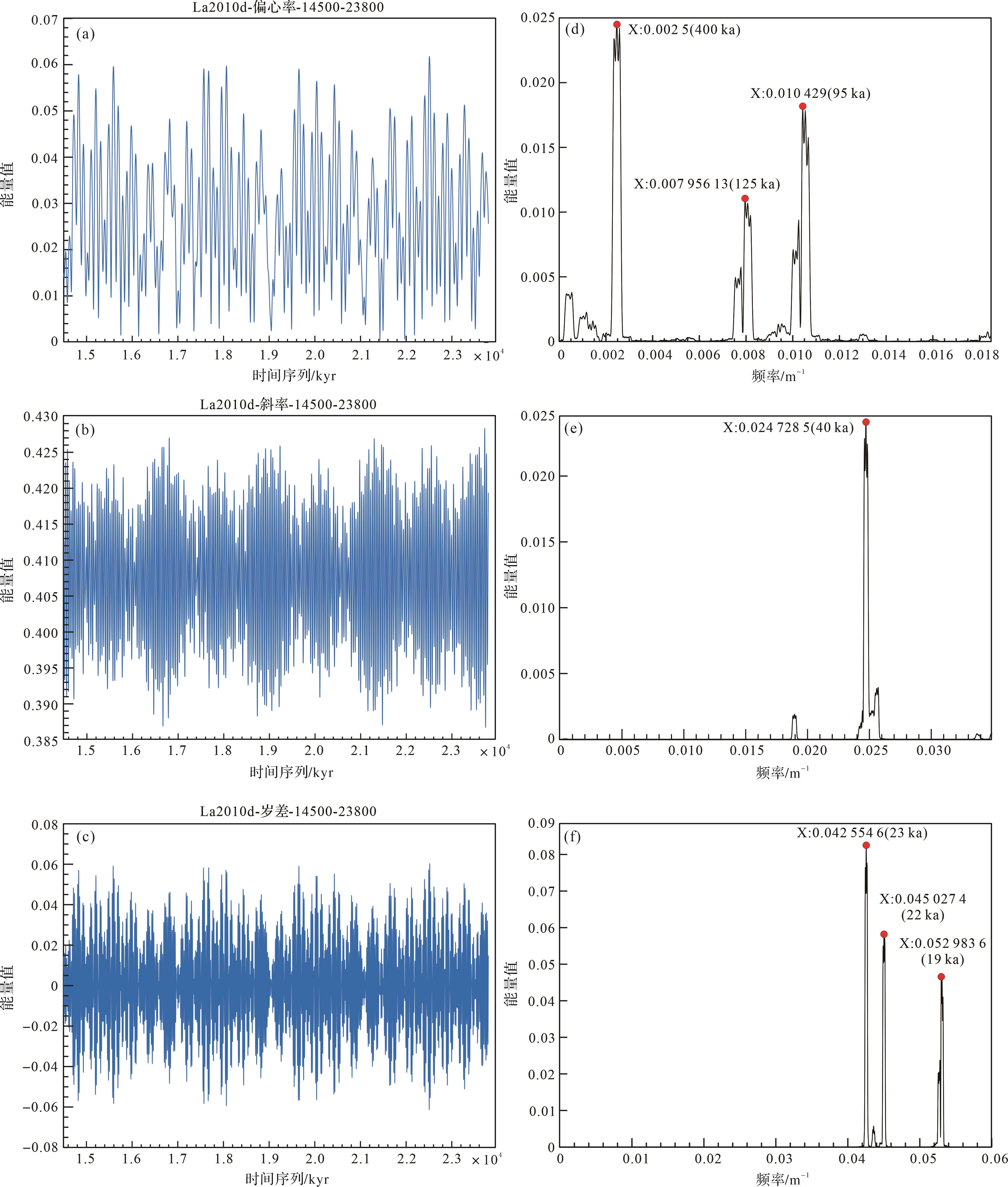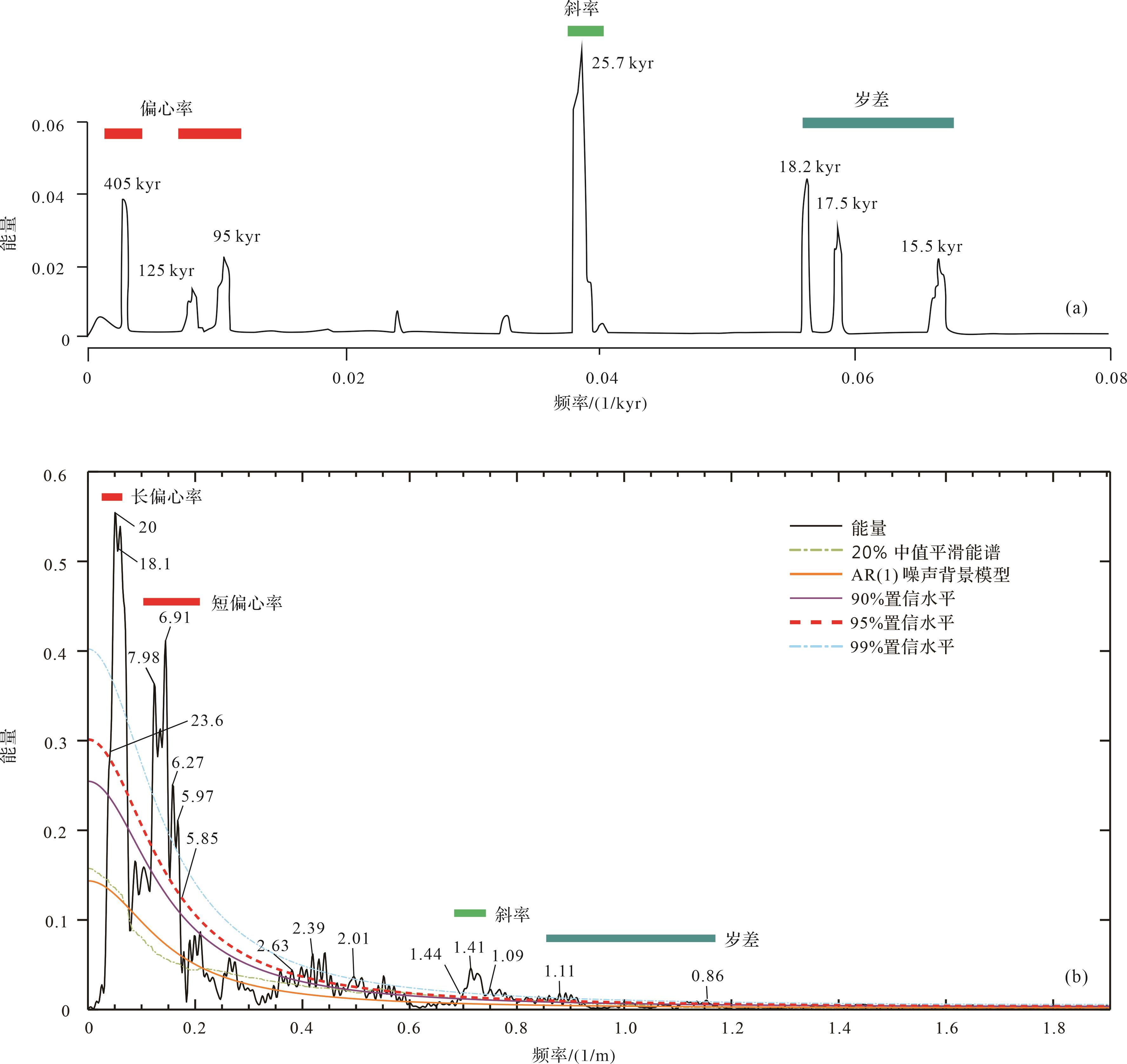 目的 通过分析地球轨道周期性变化对气候周期性变化的影响,探讨柴达木盆地下油砂山组的气候变化特征,基于米兰科维奇理论对柴达木盆地下油砂山组建立高分辨率的天文年代标尺,识别和划分高频层序,旨在为油气勘探和资源评价提供参考。 方法 利用Laskar算法计算北纬35°夏至日14.5~23.8 Ma期间地球轨道参数变化周期,确定了该沉积期米氏旋回理论和米氏旋回周期比。以南八仙油气田的仙中39井、仙中8-9井及仙中8-12井为例,对自然伽马数据进行频谱和连续小波变换分析。根据轨道周期计算出下油砂山组平均沉积速率,建立了仙中39井的“浮动”天文年代标尺。 结果 频谱和连续小波变换分析发现,新近系下油砂山组主要受400 ka和95 ka偏心率周期控制。根据计算结果,下油砂山组平均沉积速率为0.094 41 m/ka,沉积持续时间为7.2 Ma。以400 ka长偏心周期曲线和95 ka短偏心周期曲线作为基准曲线,共鉴定出18个四级准层序组和72个五级准层序。 结论 下油砂山组中所记录的气候变化明显受到旋回的控制和驱动。基于米兰科维奇理论识别与划分,能够减少主观因素的影响,提高划分结果的准确性,更准确地刻画沉积物中的气候变化特征。这些研究成果有助于深入理解地球气候演变规律,并为油气勘探和资源评价提供重要参考。