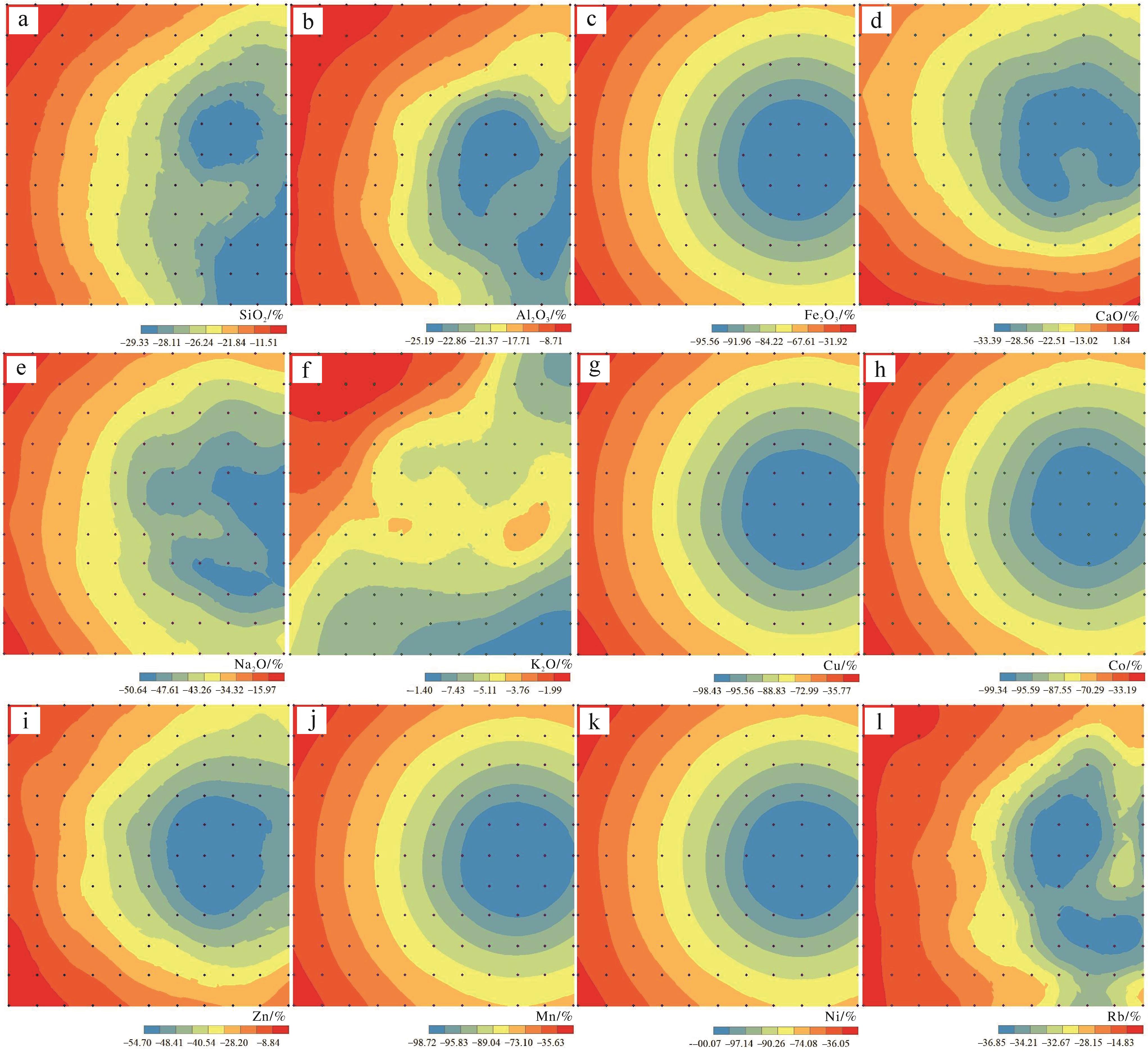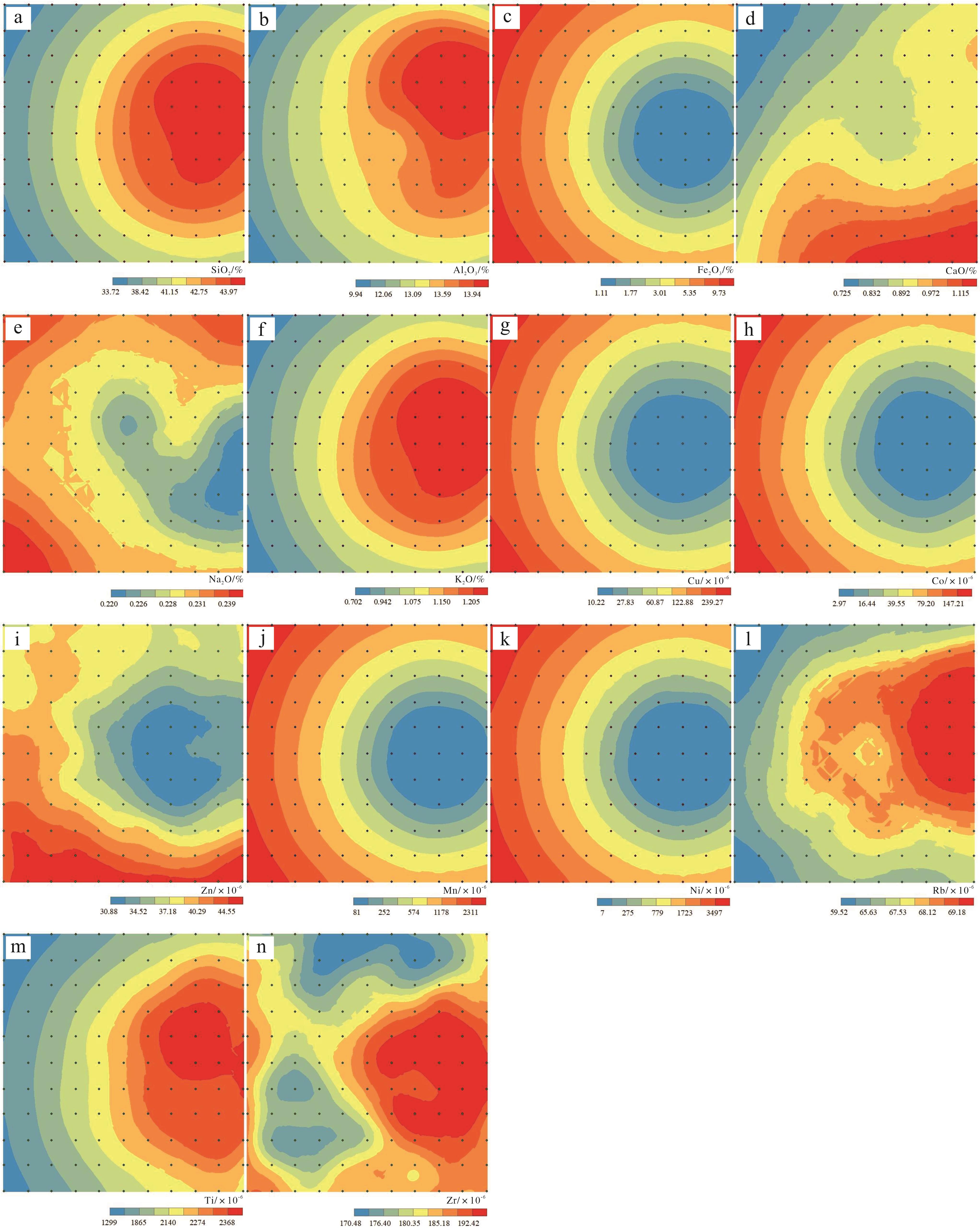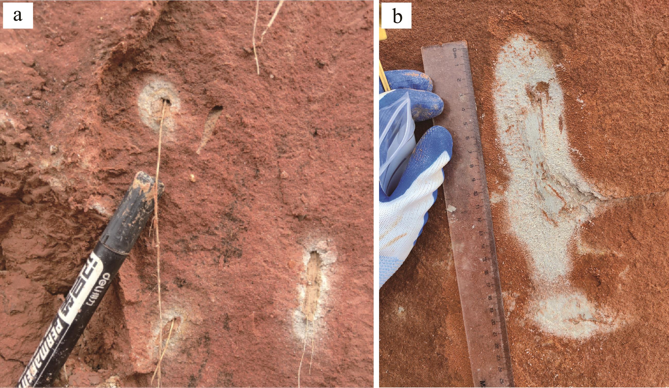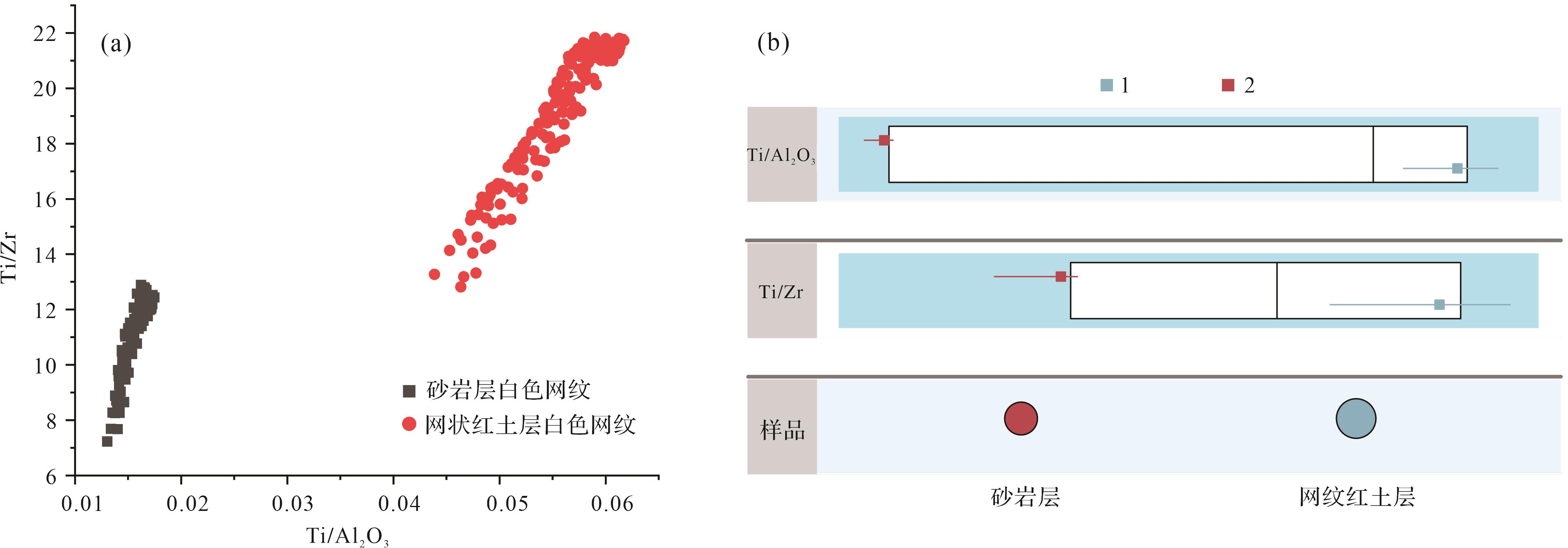 目的 中国南方网纹红土是第四纪环境变化的良好地质载体,但目前对砂岩网纹化的微观研究尚显薄弱。 方法 通过微区分析技术、地统计、因子分析等方法,对郎溪剖面砂岩层网纹和网纹红土层网纹进行元素地球化学分析。 结果 (1)砂岩层Fe2O3(1.14%~13.29%),Mn(87×10-6~3 230×10-6)等铁族元素含量呈现自网纹中心向外围增加的趋势,而其他常量元素及Ti(1 294×10-6~2 454×10-6)、Zr(171×10-6~197×10-6)等稳定性元素含量的分布趋势与之相反。网纹红土层的结果基本一致。(2)聚类分析和散点图将Ti/Zr(砂岩层:7.23~12.89;网纹红土层:12.82~21.84)和Ti/Al2O3(砂岩层:0.013~0.018;网纹红土层:0.044~0.062)划分为两个组群,指示二者具有不同的物源;(3)砂岩层Al2O3(17.3%)、Fe2O3(73.91%)、MnO(76.68%)等元素和网纹红土层Al2O3(15.78%)、Fe2O3(70.39%)和MnO(74.84%)等元素淋溶强度均呈现从网纹中心向外围降低的趋势;(4)砂岩层和网纹红土层的主因子表征了铁族元素的淋溶迁移,以及Al2O3、SiO2、K2O等常量元素和Ti、Zr等稳定性元素的相对富集过程。 结论 网纹化以铁元素的淋溶为主导但其他元素也存在一定的迁出,且具有网纹中心淋溶强而外围淋溶较弱的空间特征;受局部环境差异影响,网纹发育是从网纹中心向外围扩展的空间过程,网纹内部的物质组成是非空间均质的;砂岩层与网纹红土层网纹发育的物质基础不同,砂岩层中较为粗大的网纹指示了其发育期间气候较为湿热。