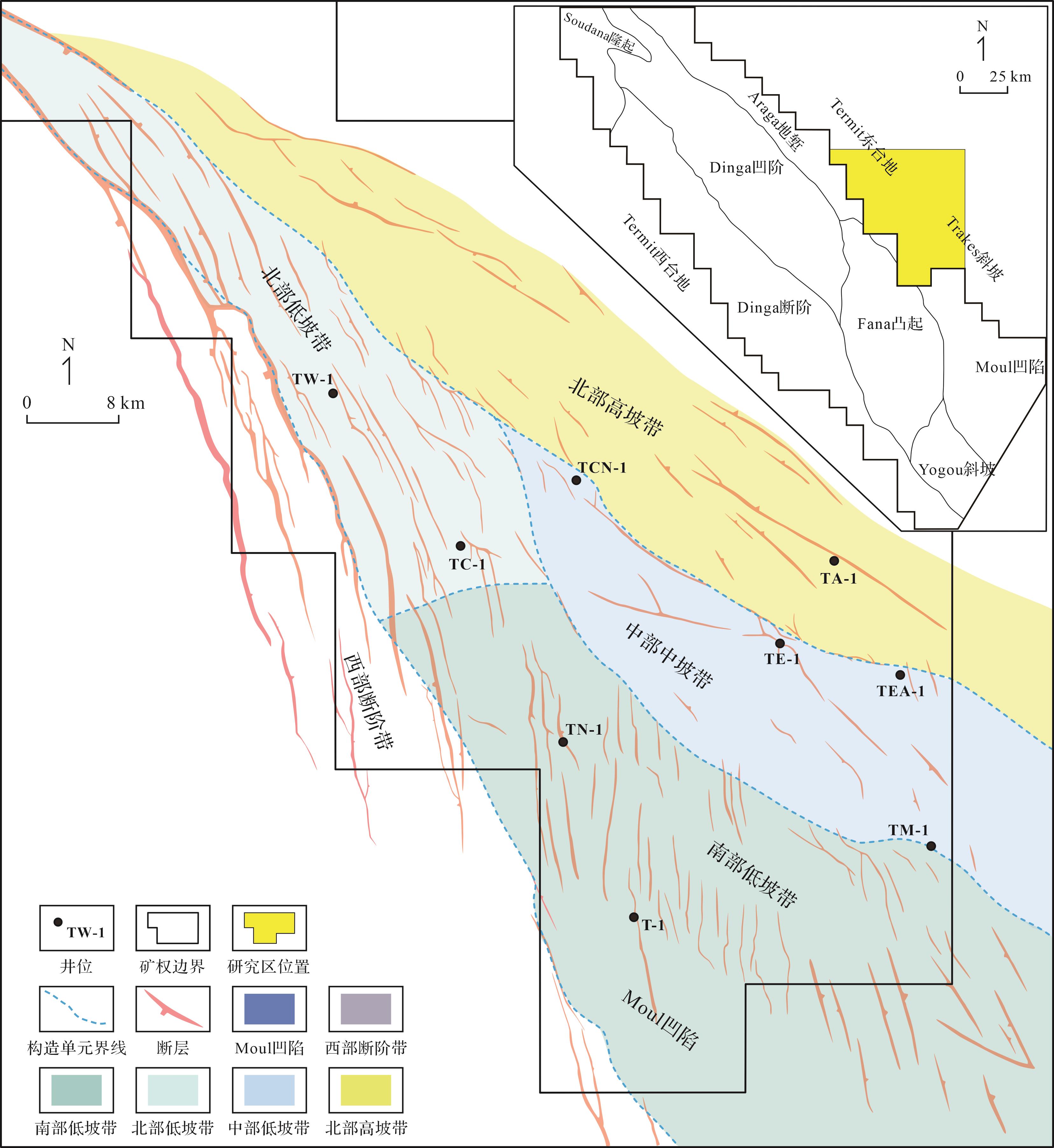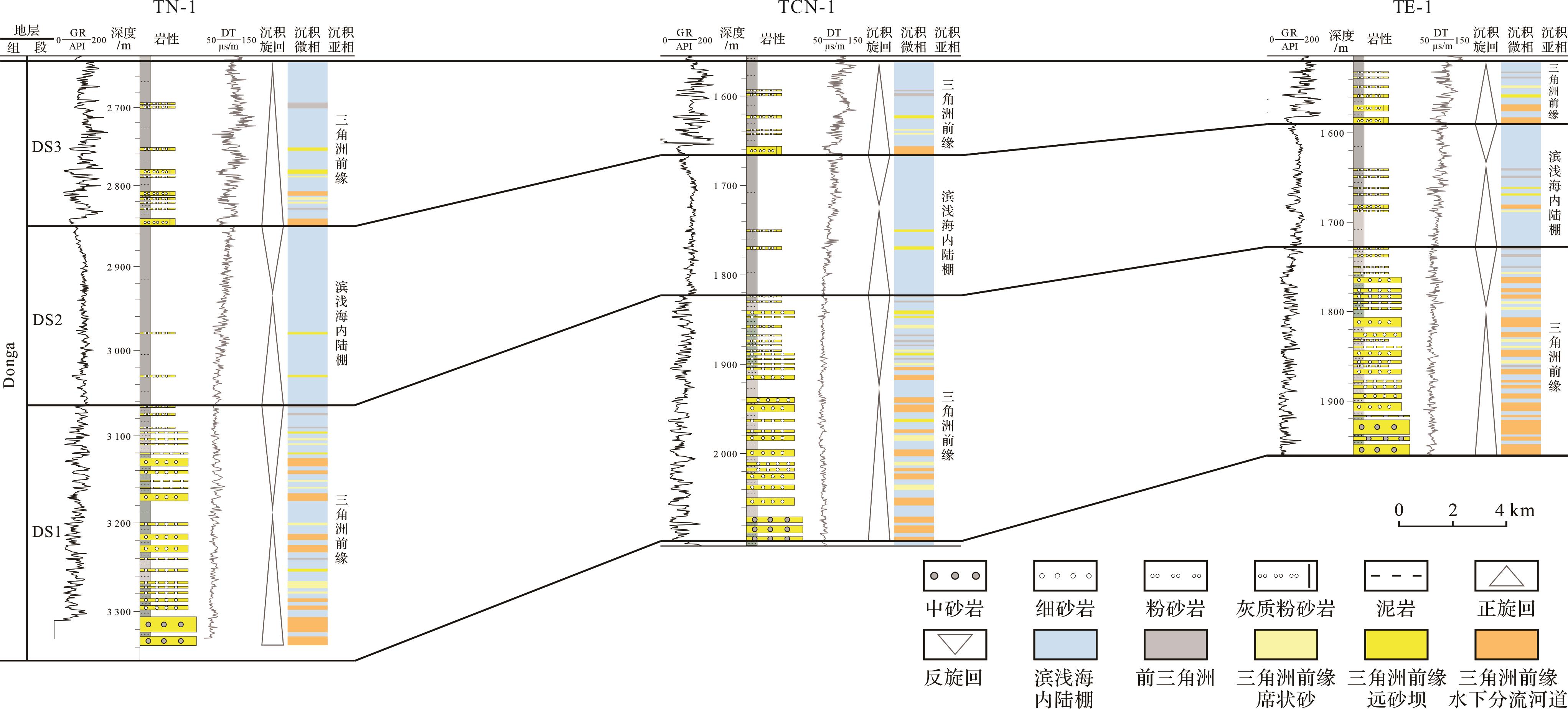目的 2019年以来,中石油在尼日尔Termit盆地Trakes斜坡针对新层系上白垩统Donga组开展风险勘探,多口井获得高产工业油流,展示出良好的勘探潜力,但相比于古近系河流—三角洲相Sokor1组,对Donga组海相砂岩储层仍缺乏系统性研究。 方法 基于地震和测录井资料,针对4口井53个井壁取心和岩屑样品,开展普通薄片、铸体薄片、X射线衍射、扫描电镜、自然伽马能谱测井等分析,研究Donga组DS1~DS3各段储层特征,并探讨其发育控制因素。 结果 DS1段储层的岩石类型主要为细—中粒石英砂岩,成分成熟度较高,DS3段主要为细粒岩屑石英砂岩,岩屑成分主要为碳酸盐岩。Donga组储层石英颗粒以次圆状—圆状为主,分选中等偏差,填隙物以高岭土、方解石为主,颗粒间多为点—线接触。成岩作用主要为压实作用、胶结作用及溶蚀作用,其中压实与胶结作用明显,且普遍存在溶蚀作用,孔隙类型以粒间次生孔隙为主,为中孔中渗—特低孔特低渗。垂向上Donga组优质储层主要分布于DS1段,平面上从西向东储层物性变好。Donga组海相储层发育主要受三个因素控制:(1)海平面变化控制沉积相及储层垂向发育,DS1段沉积于海侵初始期,发育三角洲前缘水下分流河道沉积,DS3段沉积于最大海泛期,以三角洲前缘席状砂和水下分流河道沉积为主,水体较咸,碳酸盐胶结物含量高,储层物性差。(2)晚白垩世稳定缓坡古地貌背景利于砂体发育,古近纪强烈走滑断裂活动诱导储层岩石形成微裂缝,有效提升了储层物性。(3)石英砂岩刚性支撑利于原生孔隙保存,碳酸盐岩、长石等不稳定矿物的溶蚀作用改善储层岩石孔隙结构。 结论 区域海相泥页岩盖层的发育利于Donga组形成 “自生自储”储盖组合,相较于Trakes斜坡低坡带,中部中坡带及北部高坡带更靠近东部物源,Donga组砂岩更发育,储层物性更好,是下步开展勘探的有利区带。
