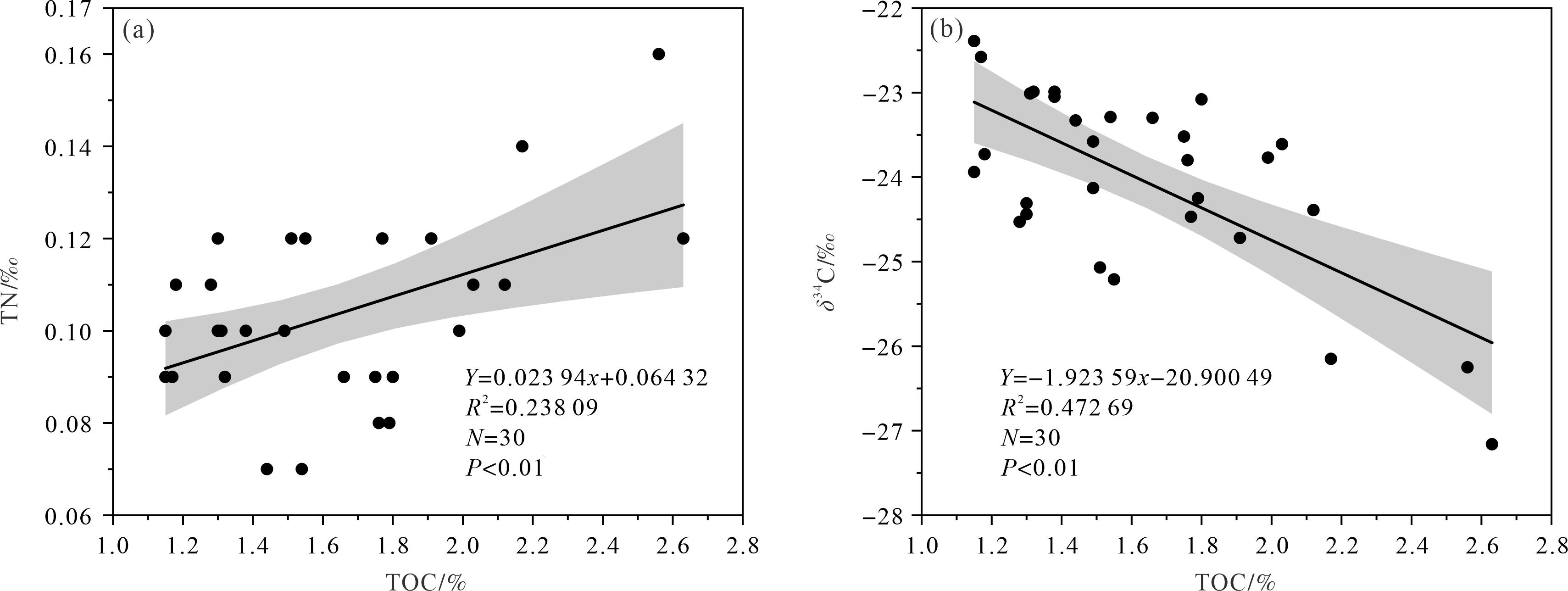 图  3  柱状沉积物中TOC与TN/δ13C的相关关系