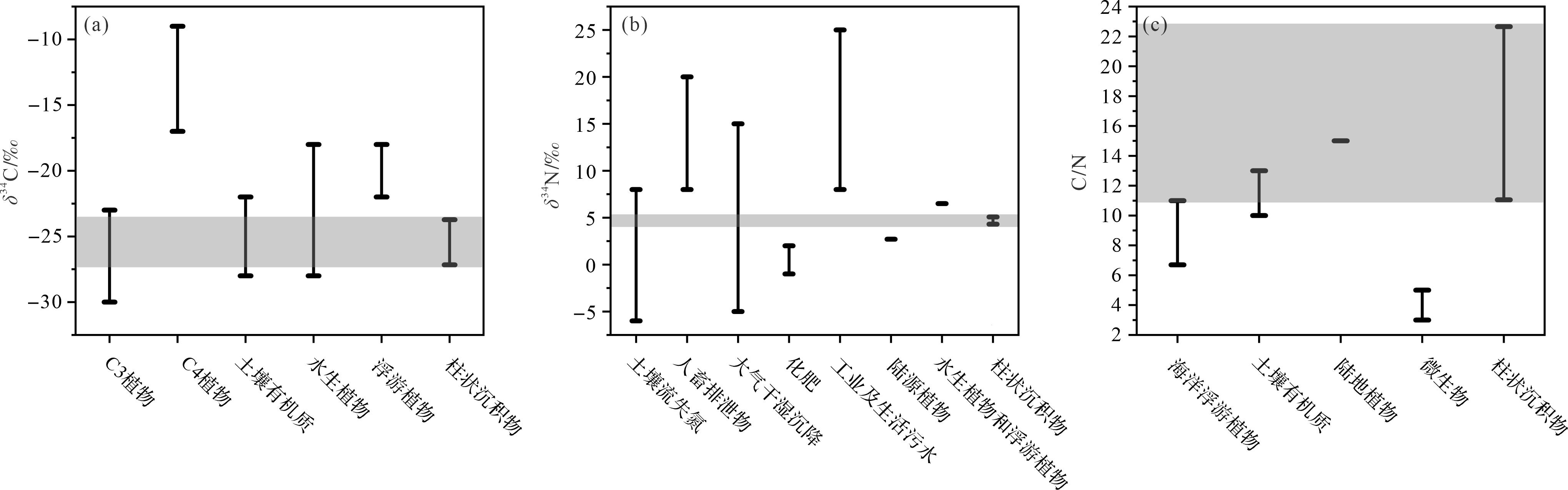 图  6  柱状沉积物中δ13C、δ15N和C/N的来源分布特征
