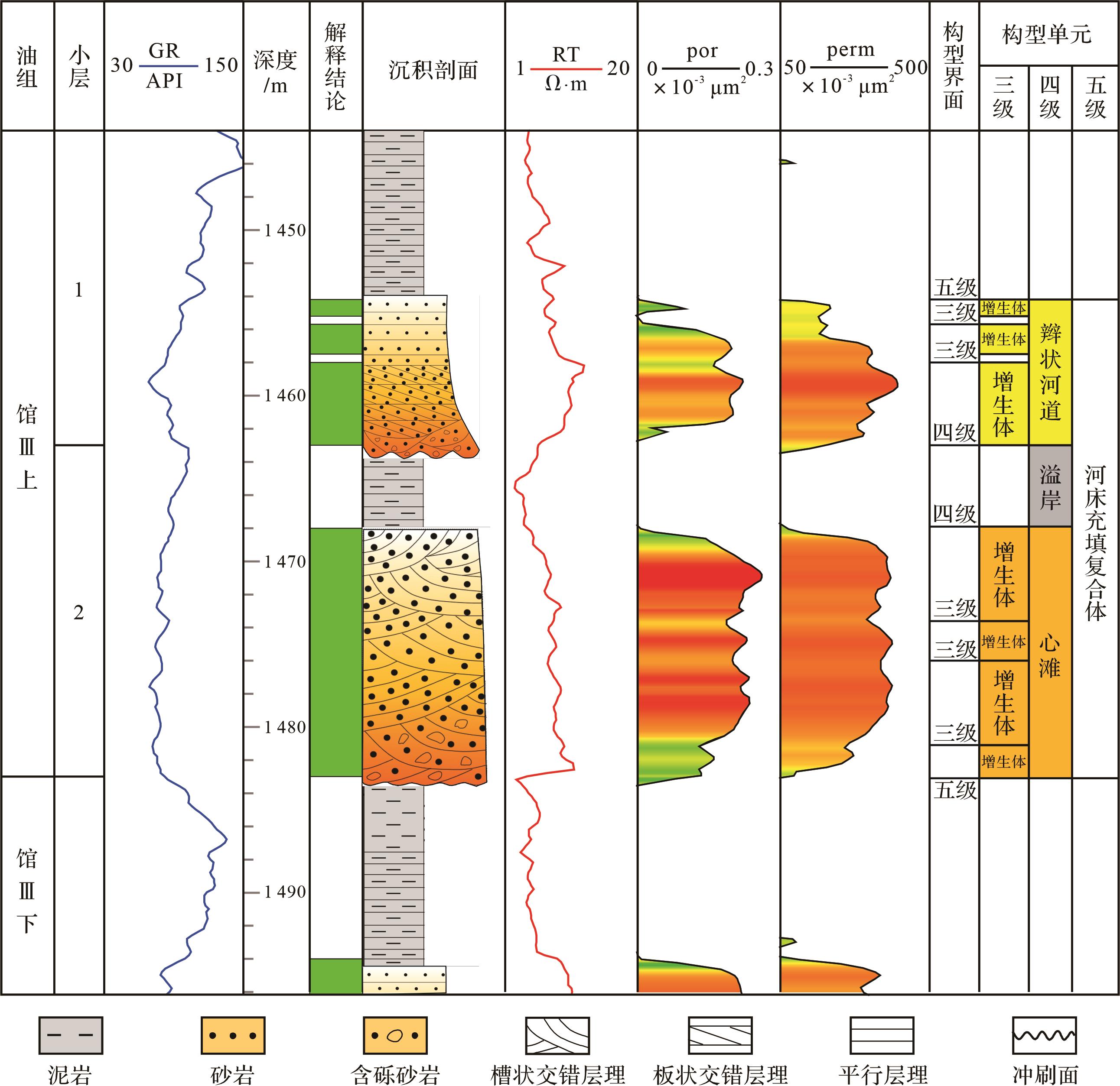 Figure  2.  Architectural units interface identification of Guantao Formation III oil formation (N1gIII) from well C1, C⁃6 oilfield