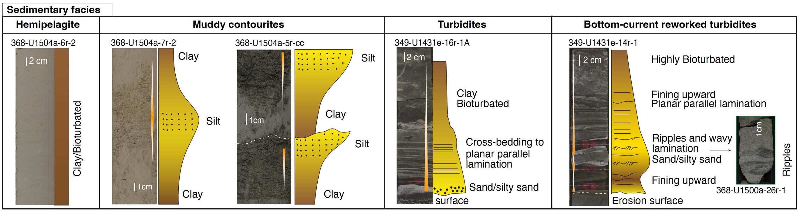[1] de Castro, S., Hernández-Molina, F.J., Rodríguez-Tovar, F.J., Llave, E., Ng, Z.L., Nishida, N., Mena, A., 2020. Contourites and bottom current reworked sands: Bed facies model and implications. Marine Geology 428, 106267.